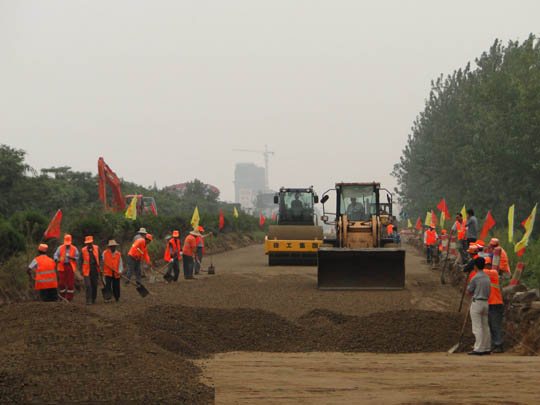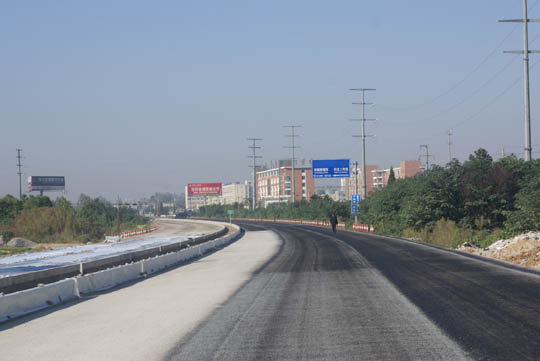為迎接2012年11月10日在金太陽國際會展中心開幕的第三屆中國國際羽絨節(jié),六安市交通公路實業(yè)有限公司臨危受命承建G312六安段(金橋西至皖西大道)改建工程延伸段。該工程起于K565+330皖西大道大交叉口處,終點位于K567+200迎賓大道交叉口處,全長1870米,老路為雙向四車道一級公路,路基寬24米,采用下挖反填法,碎石化路面。公司上下克服資金緊、工期短、施工難度大等困難,放棄假日休息,全力以赴,日夜奮戰(zhàn),確保按時、按質(zhì)、按量完成該工程。目前1.1公里換板修補和面層碎石化已結束,700米挖方段的級配碎石回填已完成,正在進行水穩(wěn)攤鋪,預計10月25日完成主體工程。為六安的招商引資創(chuàng)造良好交通環(huán)境,為展示“五色、精彩”六安形象添彩。